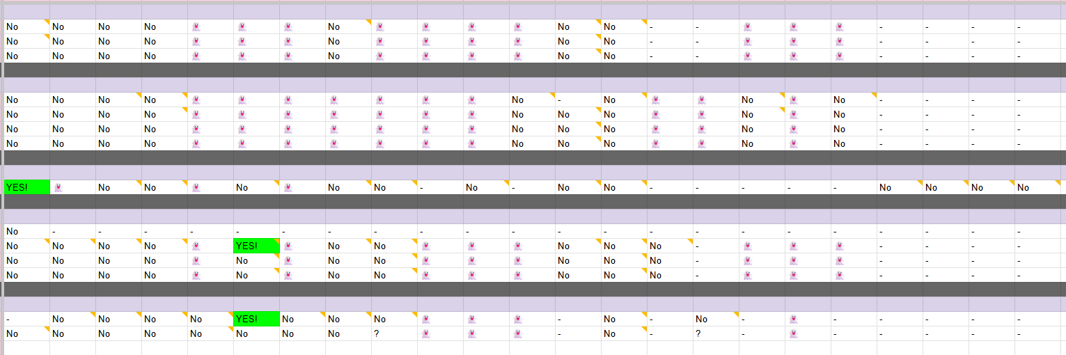 The top row is the list of publishers, and the left column is the manuscript/s that went out to publishers. Dashes signify that my manuscript wasn’t sent to this publisher and the ones with the yellow corner show the feedback received. All those ghosts represent no response 👻 and the 3 yeses represent publishing deals. Woohoo!